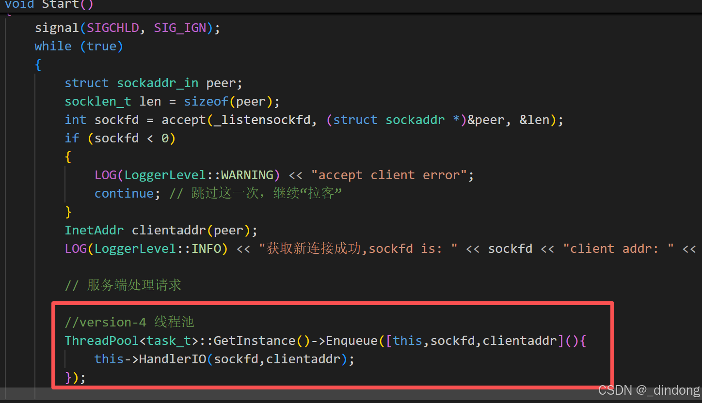 // ThreadPool<task_t>::GetInstance()->Enqueue([this,sockfd,clientaddr](){