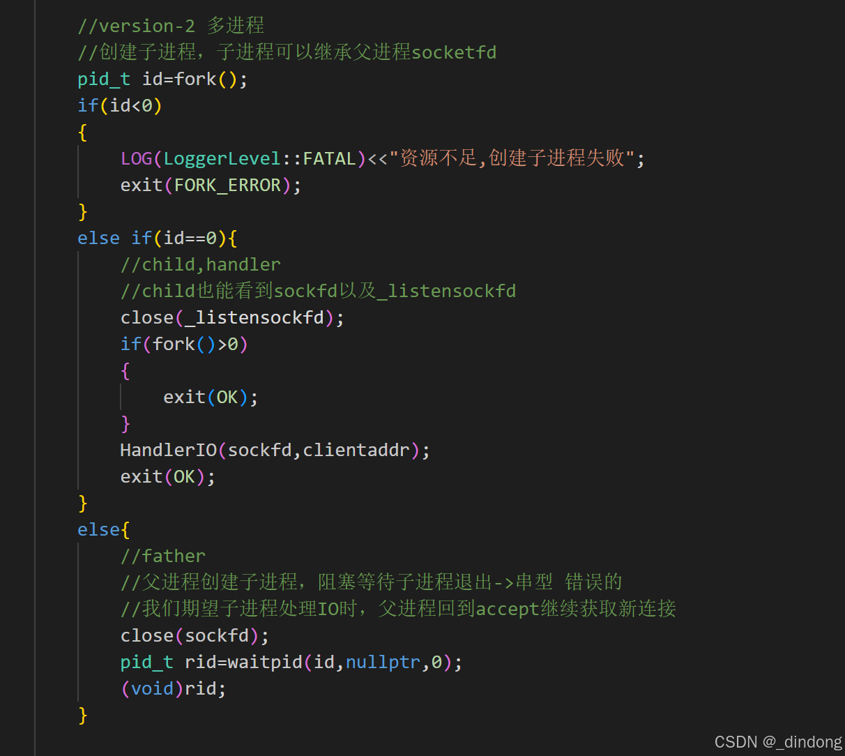 如果创建套接字后获得的文件描述符是小于0的,说明套接字创建失败,此时也就没必要进行后续操作了,直接终止程序即可。