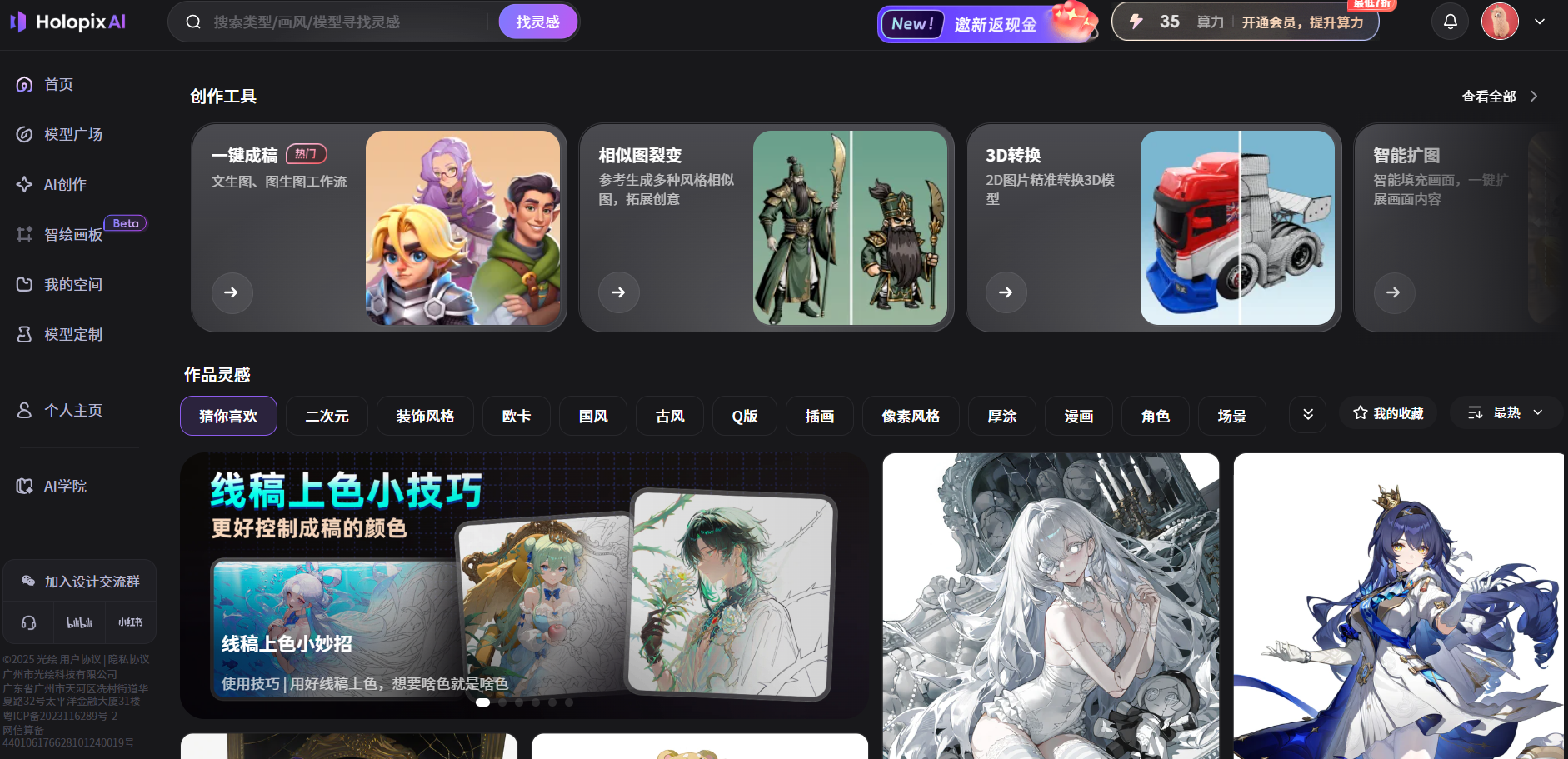 Holopix AI 是由广州光绘科技有限公司开发的、专为游戏、动漫和插画设计领域打造的一站式AI美术创作平台