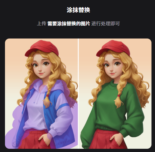 局部重绘与替换:用户可框选特定区域,通过文本指令让AI仅修改该部分(如调整服饰细节、修复手部结构),而保持其余画面不变。