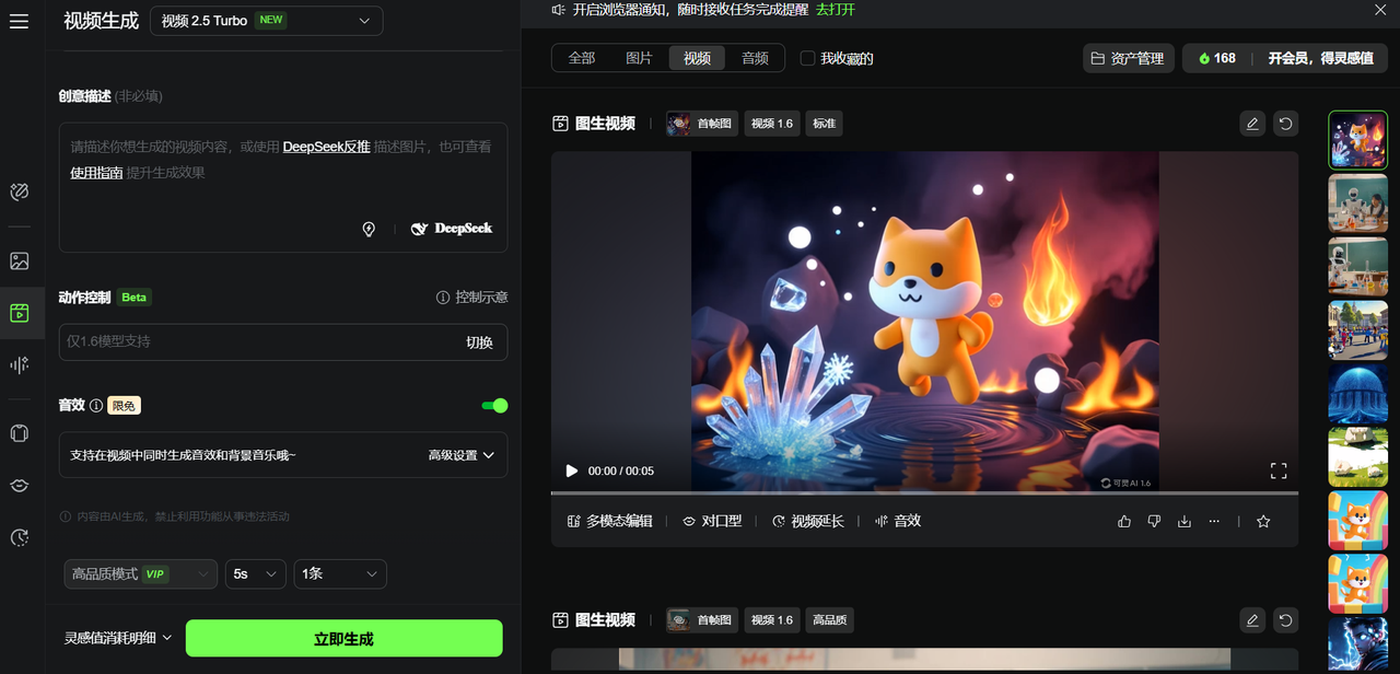 数字人视频:2025年9月新增功能,用户上传角色图片和音频/文本,可生成口型同步、表情自然的数字人视频,支持多语言,画质1080p/48fps,成本低至0.12元/秒。