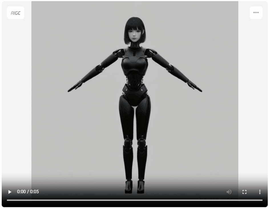 人物主体那有个播放按钮,我们点击一下,会看到混元已经通过一张人物正视图,生成了全三维视图,这真的太奈斯了!