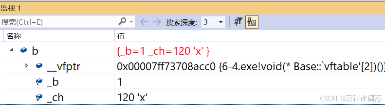上⾯题⽬运⾏结果12bytes,除了_b和_ch成员,还多⼀个__vfptr放在对象的前⾯(注意有些平台可能会放到对象的最后⾯,这个跟平台有关),对象中的这个指针我们叫做虚函数表指针(v代表virtual,f代表function)。⼀个含有虚函数的类中都⾄少都有⼀个虚函数表指针,因为⼀个类所有虚函数的地址要被放到这个类对象的虚函数表中,虚函数表也简称虚表