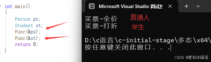 //这⾥可以看到虽然都是Person指针Ptr在调⽤BuyTicket