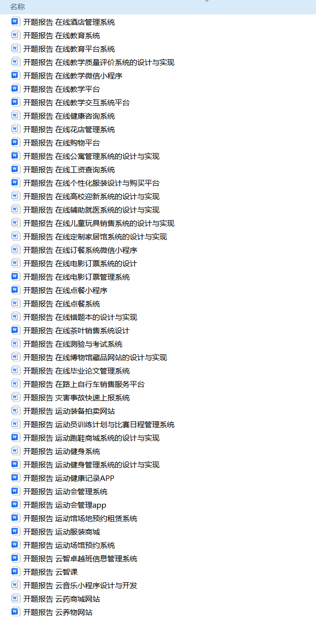 以上是H同学的毕业设计答辩过程,如果你现在还没有参加答辩,还是开题阶段,已经选好了题目不知道怎么写开题报告,可以下面找找有没有自己符合自己题目的开题报告内容,列表中的开题报告都是往届真实的开题报告可参考。