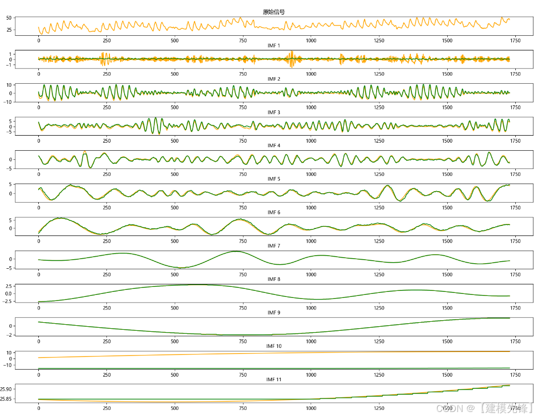 各模型分别对其对应的分量进行预测,生成每个 IMFs 的预测值;然后将所有预测的 IMFs 重新组合,构建出完整的预测信号。通过合理分配复杂模型和简单模型的任务,我们能够在不同频率特征的信号上实现最佳的预测性能。