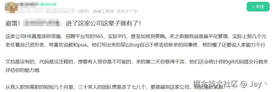 - 说是晚上9点下班,几个前端重要人物,都是凌晨1点、2点才下班 (常态,至少我在的那段时间都是这样)。更有甚者(3点、4点才下班),我真的融入不进去,我基本是10点、11点走。