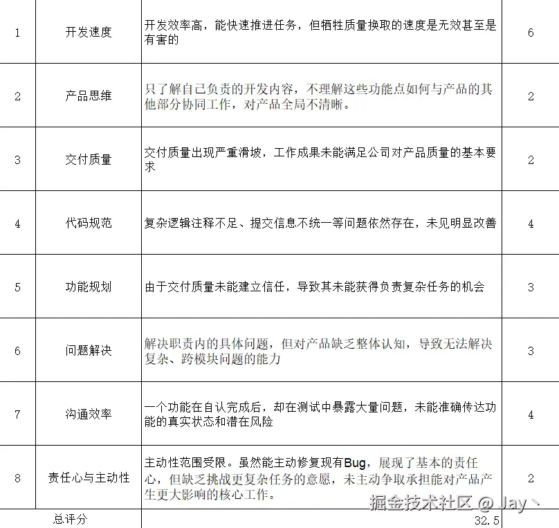 上面的打分表让我emo了好一段时间,我时常看着评分表 在想是不是自己真的这么差劲。可能确实有能力更强的能够胜任,但确实不是我。走了也挺好,起码不用这么晚下班了