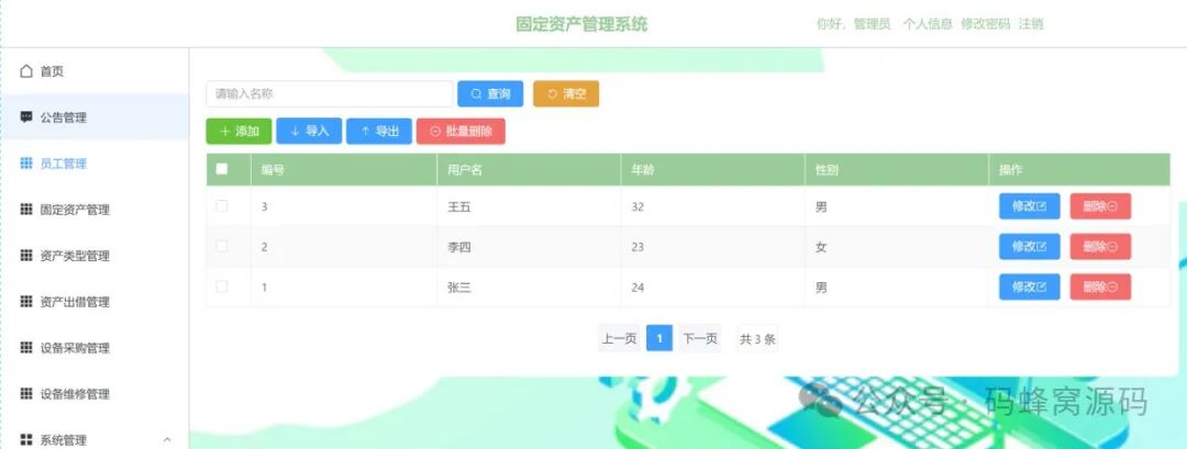 本课程演示的是一款 基于spring boot的固定资产管理系统,主要针对计算机相关专业的正在做毕设的学生与需要项目实战练习的 Java 学习者。