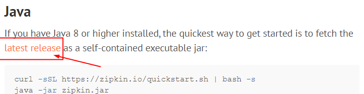Zipkin 可以在 Java、Docker 和 running三种支持方式,下载网址为https://zipkin.io/pages/quickstart.html。本节主要下载 Java 版本的Zipkin,版本信息为 zipkin-server-3.5.1-exec.jar。具体操作如下所示。