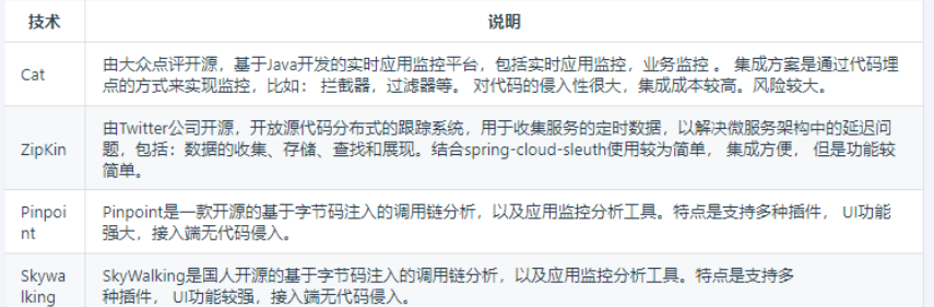 行业内比较成熟的分布式链路追踪技术解决方案如下图所示。
