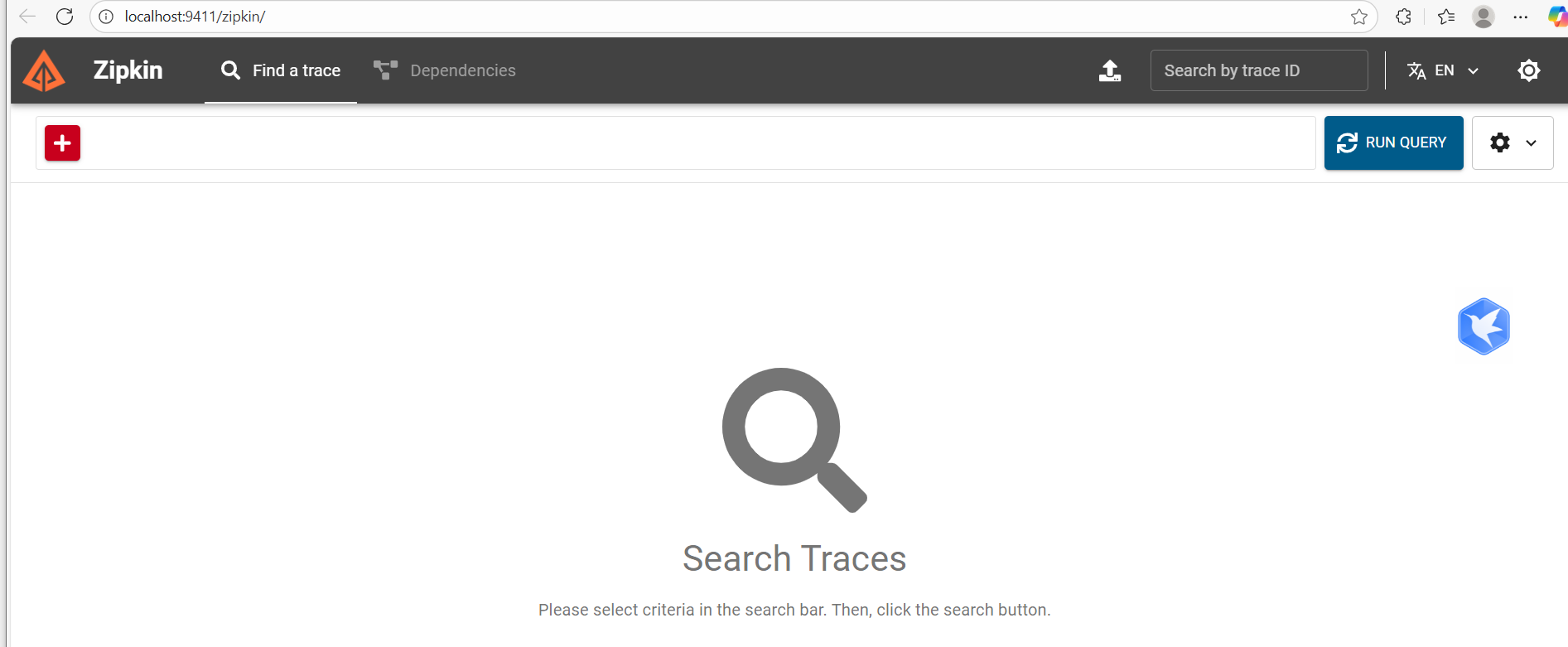 接着,打开浏览器,输入网址http://localhost:9411/访问 Zipkin 的 Web 页面。若看到如下信息,则表示 Zipkin 启动成功。