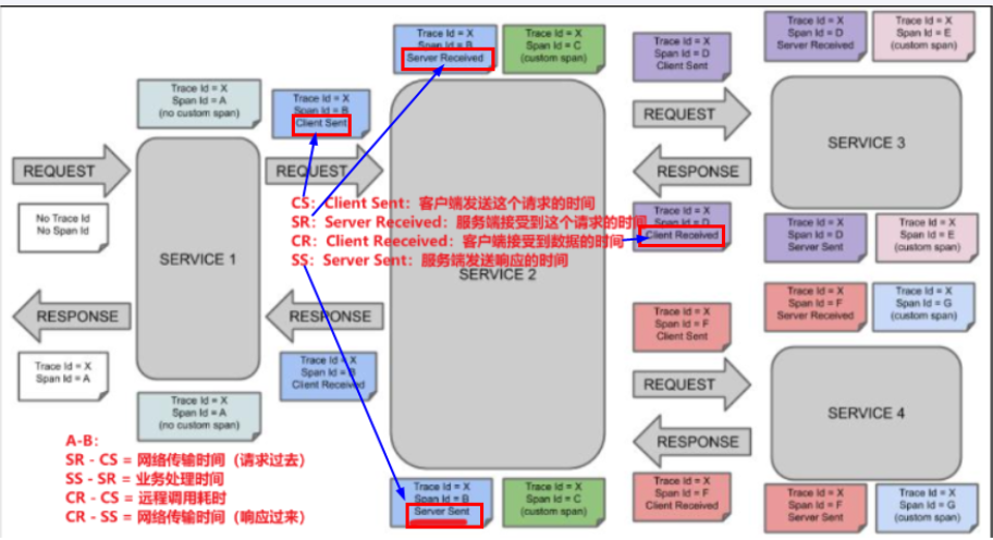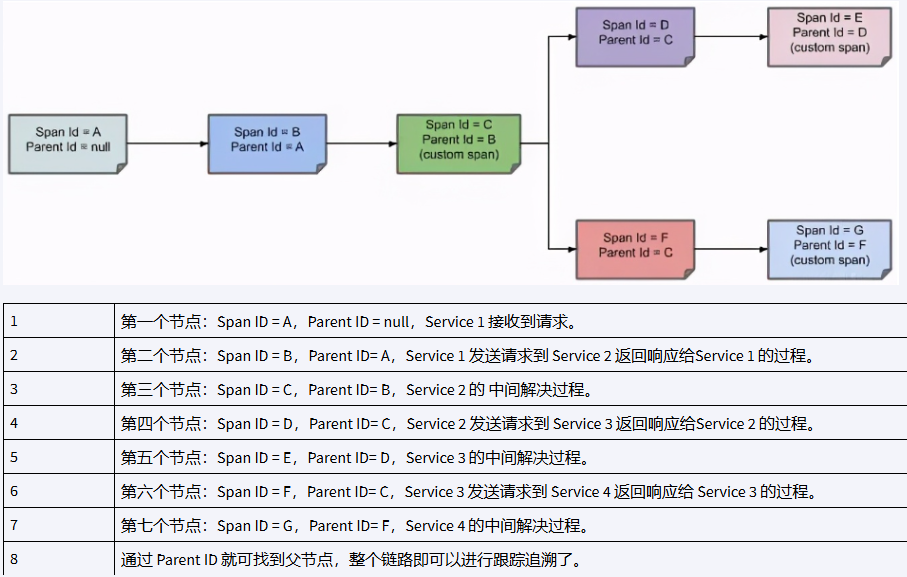 那么一条链路追踪会在每个服务调用的时候加上Trace ID 和 Span ID链路通过TraceId唯一标识,Span标识发起的请求信息,各span通过parent id 关联起来 (Span:表示调用链路来源,通俗的理解span就是一次请求信息)。