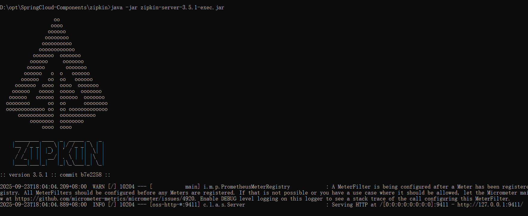 接着输入命令 java -jar zipkin-server-3.5.1-exec.jar