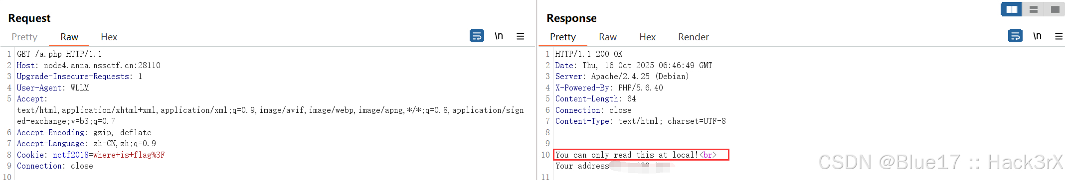 ,这个我们可以通过 X-Forwarded-For 字段进行伪造: