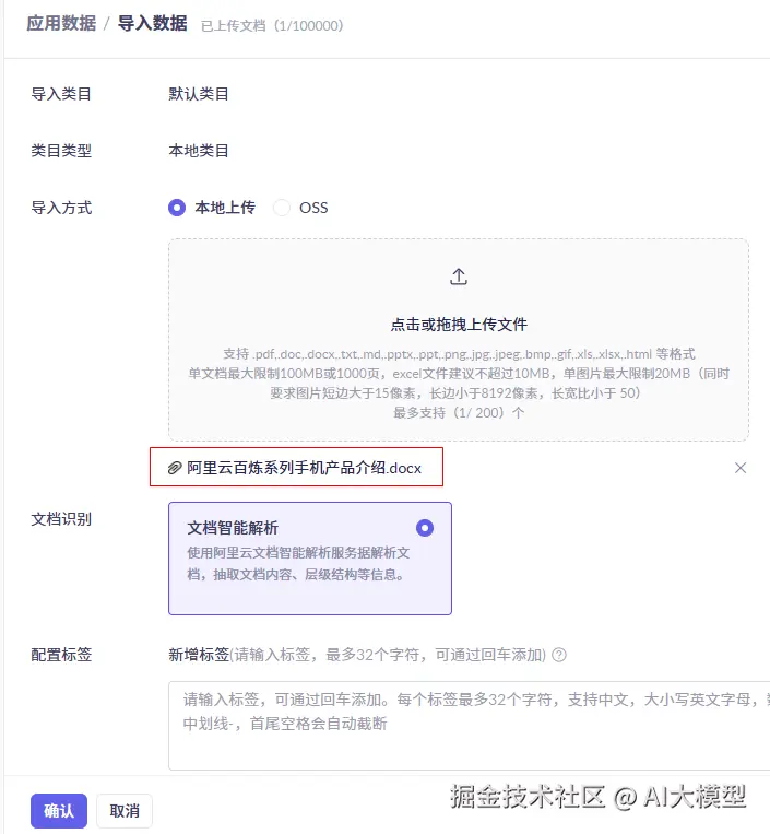 **本文重点关注的是知识库:**百炼提供了一个可视化的知识库管理界面。你可以像上传网盘文件一样,上传 Word、PDF、Markdown、TXT 等格式的文档。平台会自动完成: