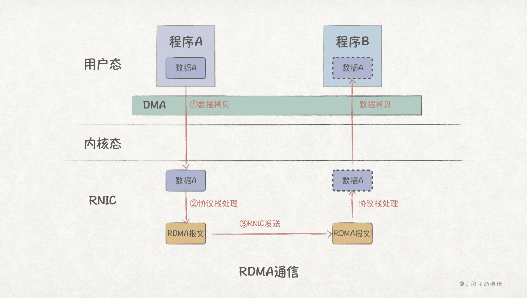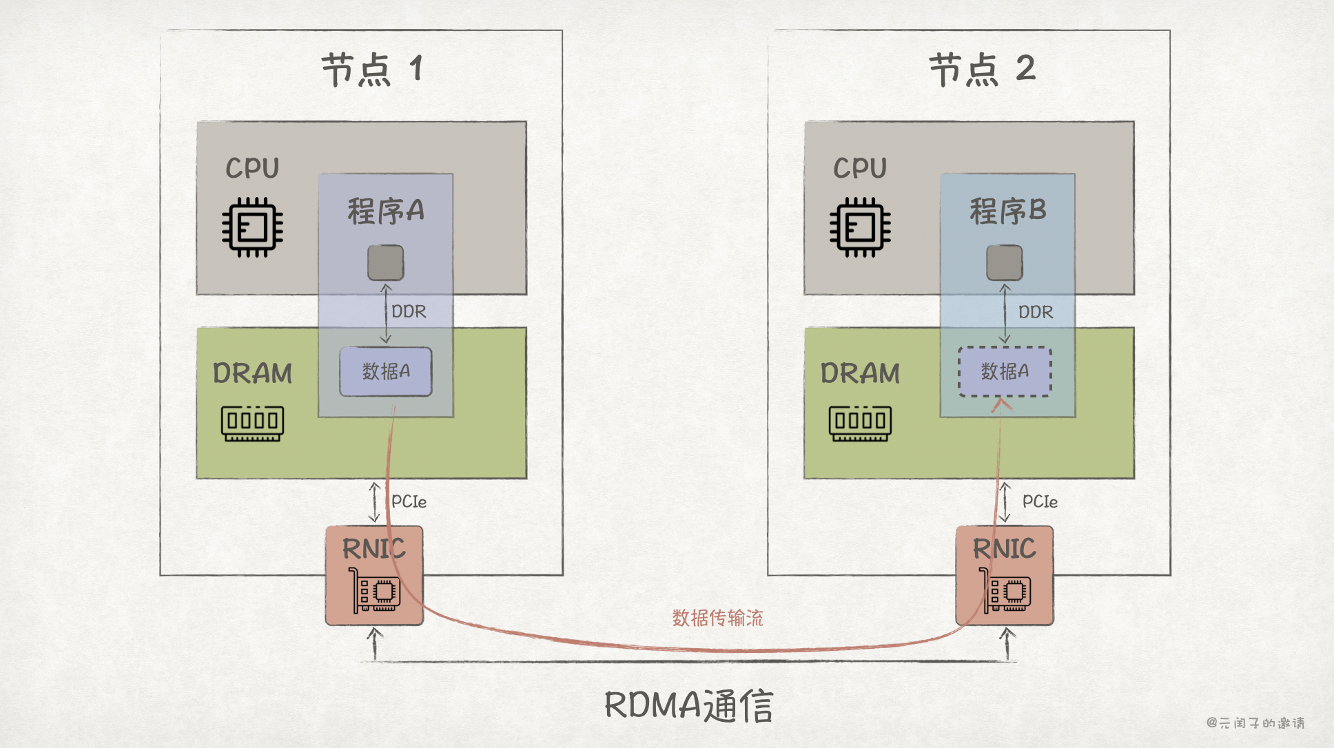 RDMA(Remote Direct Memory Access),远程直接内存访问,是一种能够绕过 CPU 和操作系统内核的通信技术。