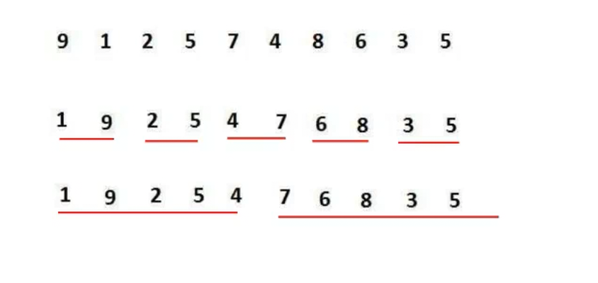 另一种分法看下图:这里就是在分组和合并组的过程中(预排序)趋向于有序,n的奇数虽然逐渐变大,但是它逐渐趋向与有序,运行的速度也会得到提升