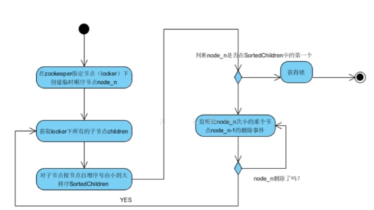 在获取分布式锁的时候在 locker 节点下创建临时顺序节点,释放锁的时候删除该临时节点。客户端调用 createNode 方法在 locker 下创建临时顺序节点,