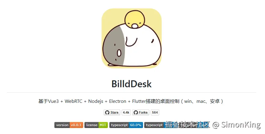 的由来仅仅是作者偶然的一个 idea,然后花了三天时间开发了初版(2024/2/28 第一次提交 Github)。BilldDesk