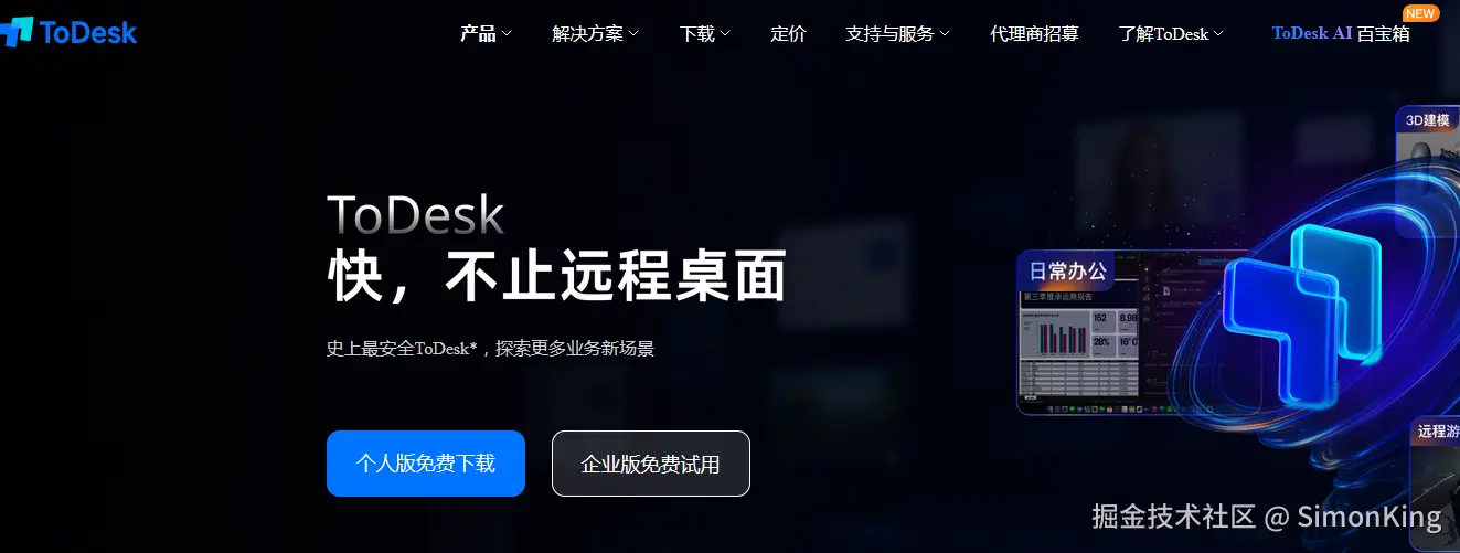 号称时尚最安全的远程桌面。这是一款近年来在中国市场非常火爆的远程控制软件,因其对国内网络环境做了深度优化,在速度和延迟方面表现优异,被许多人视为TeamViewer