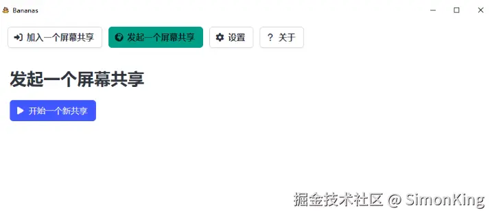 界面非常简单只需要发一起一个屏幕共享或者加入一个屏幕共享即可。