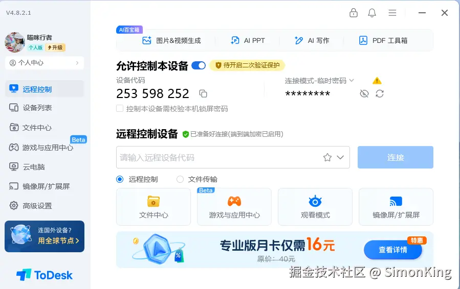 - 免费使用: 目前基础远程控制功能是免费的。