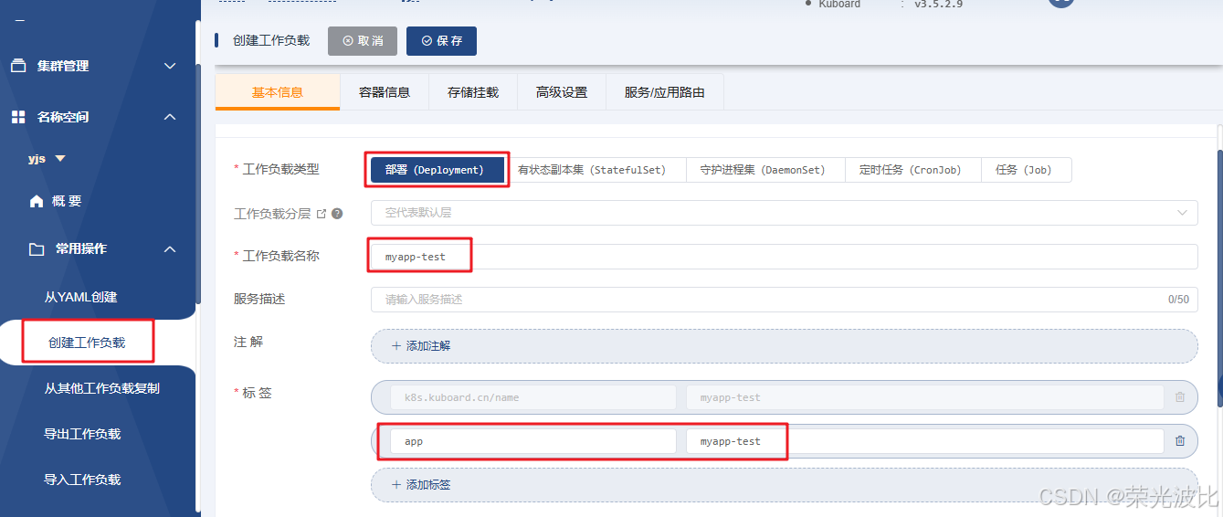 (Deployment名称); - 【标签】:点击【添加标签】,设置"键"为