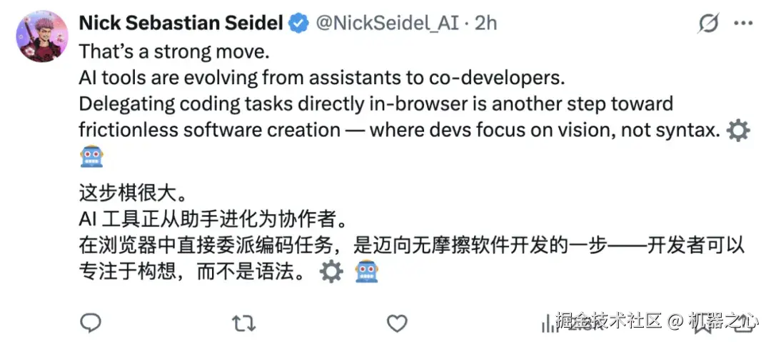 并且,允许在浏览器中直接委派编程任务,是迈向高效顺滑软件开发的关键一步。