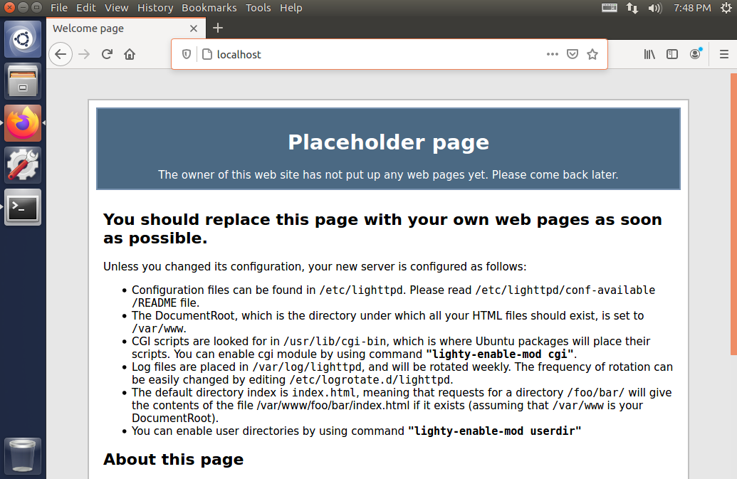 默认首页文件是 index.lighttpd.html