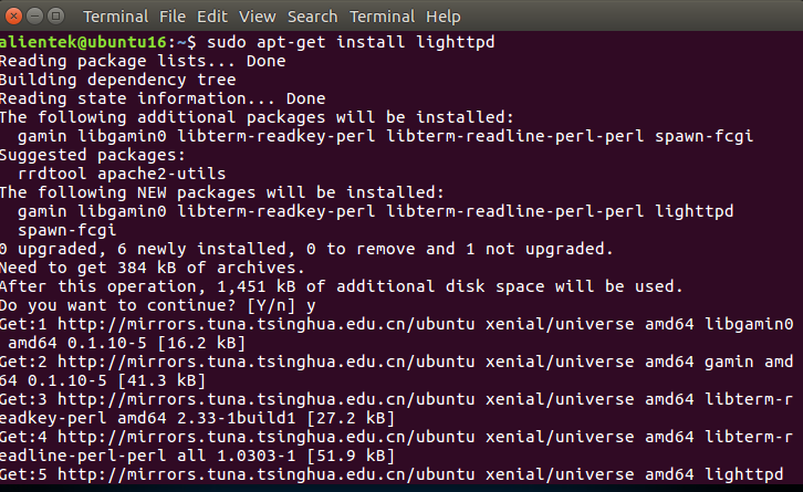 sudo apt install lighttpd