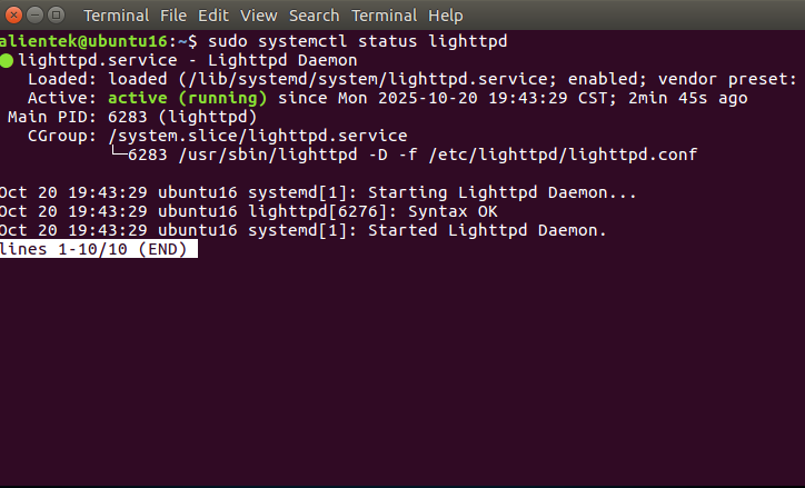sudo systemctl status lighttpd