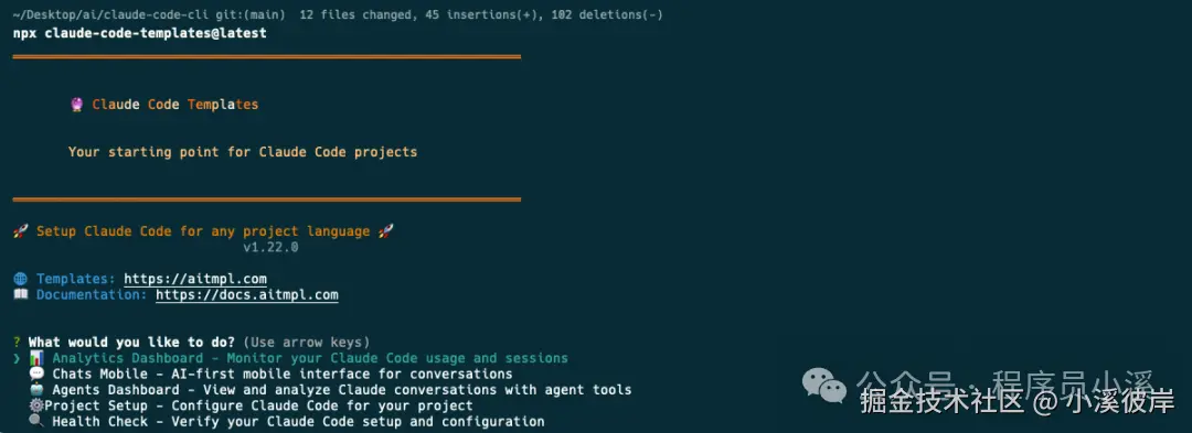 Claude Code Templates还提供了 Claude Code分析、对话监视器、项目初始化、健康检查 等其他CLI功能。