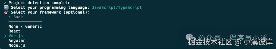 Claude Code Templates面板选择【Project Setup】,开发语言列表选择语言类型,这里以【JavaScript/TypeScript】为例