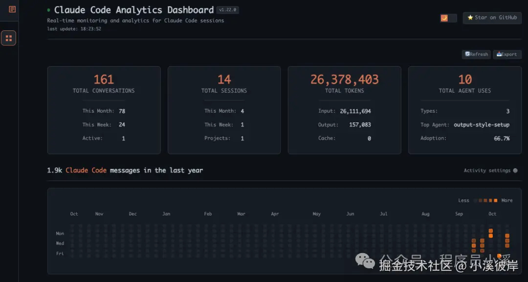 执行完成后会在浏览器打开Claude Code分析服务http://localhost:3333/[#dashboard](javascript:;),预览效果如下: