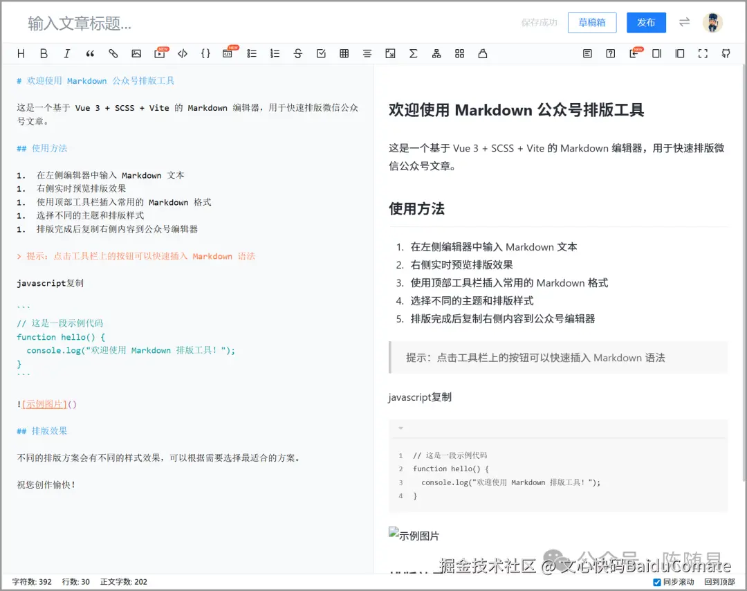 接着又处理了几个报错问题后,咱们的 Markdown排版美化工具完成了!