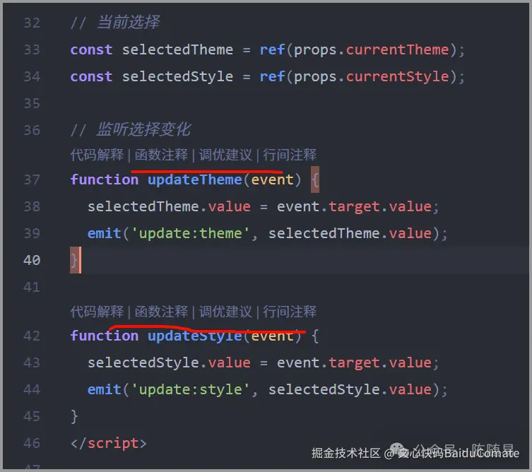 点击 函数注释 和 行间注释,精准且准确地给函数和代码提供了注释说明 。同时,代码自动补全非常快速,毫无卡顿。所以我说,为什么这是适合 中国宝宝的AI编程工具,因为 大道至简 是刻在我们文化里的符号,文心快码 它做到了。
