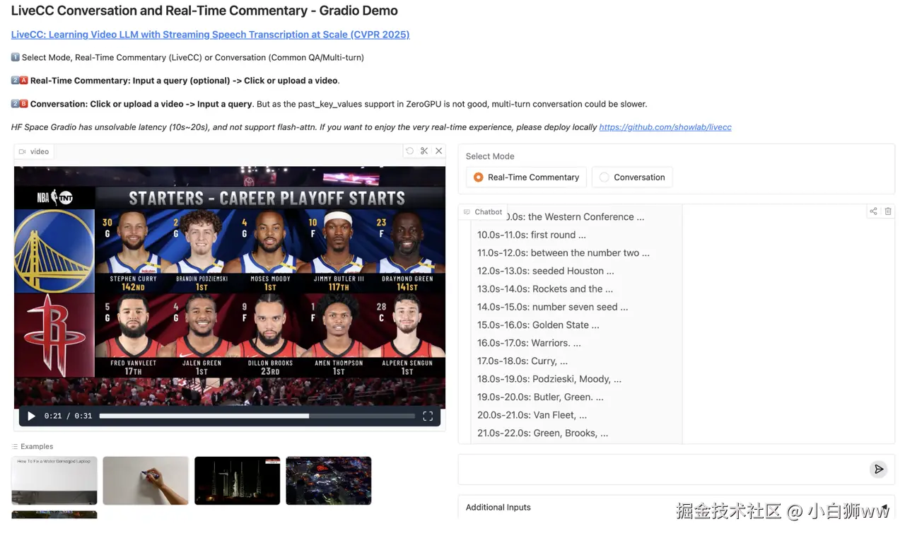 你刷视频的时候是否也遇到过这些烦恼:看教学视频没有字幕,步骤总被错过;看比赛时听不懂专业术语,全程不知所云......别怕,你的救星来啦!新加坡国立大学 Show Lab 与字节跳动公司于 2025 年 4 月 25 日推出了 LiveCC 模型,这是一个专注于大规模流式语音转录的视频大语言模型项目,旨在通过创新的视频 - 自动语音识别(ASR)流式方法训练出首个具备实时评论能力的视频大语言模型。简单来说,它就是你的专属解说员,分析视频内容、解析字幕对它来说都是小菜一碟。