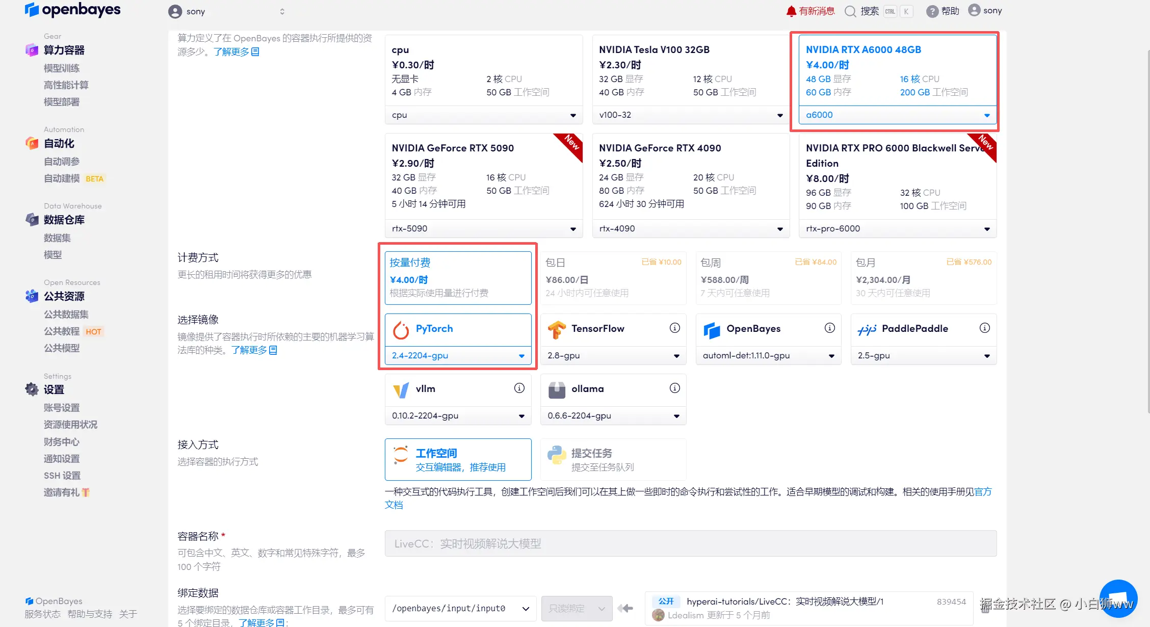 使用云平台:OpenBayes