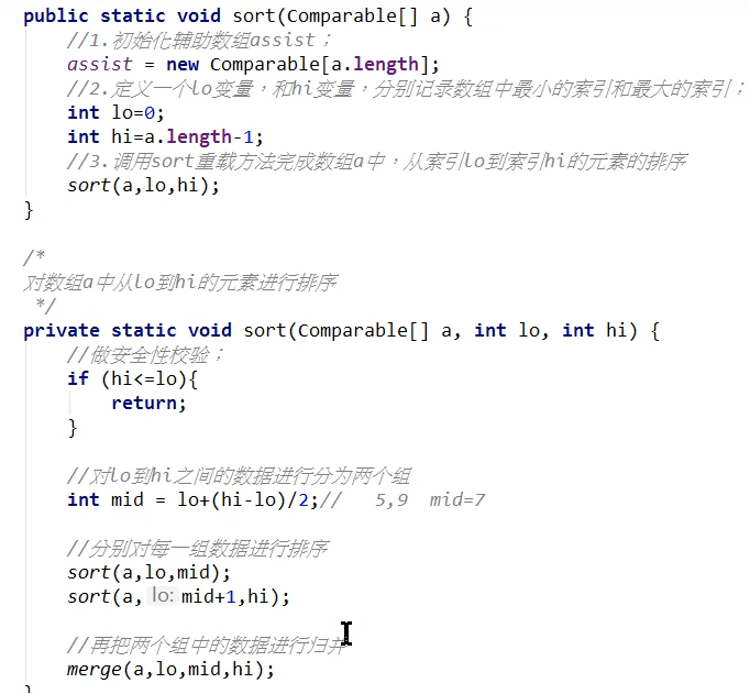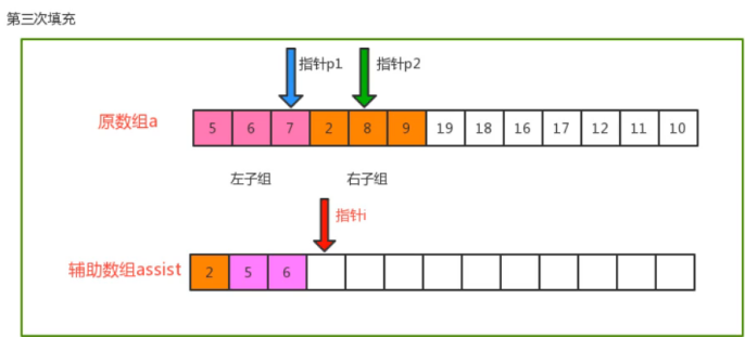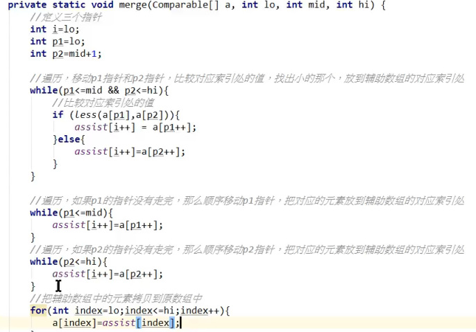 - 将相邻的两个子组进行合并成一个有序的大组;