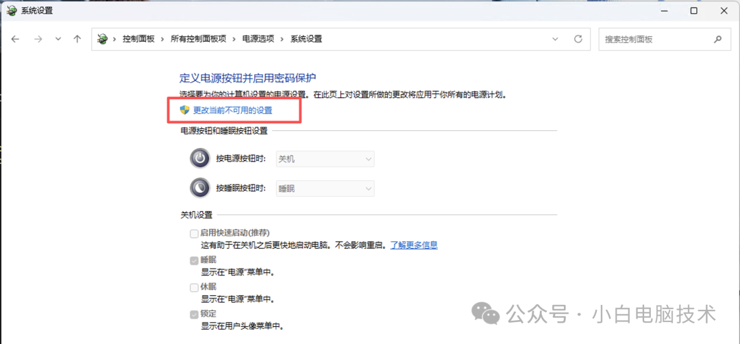 有时候休眠选项默认是隐藏的,可以通过【控制面板】调出。
