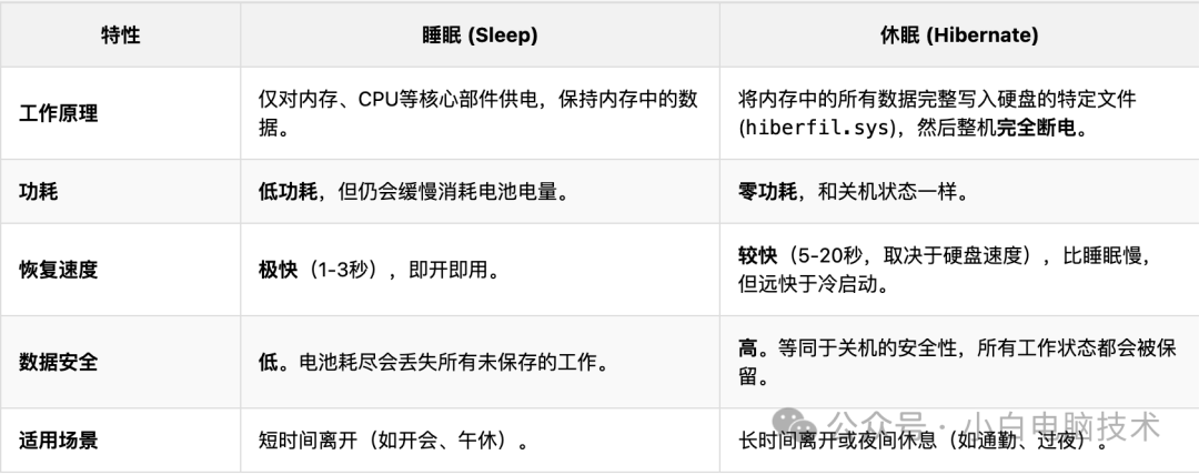 Windows系统的两个核心节能功能:睡眠和休眠。咱们今天就来讲讲这两个。