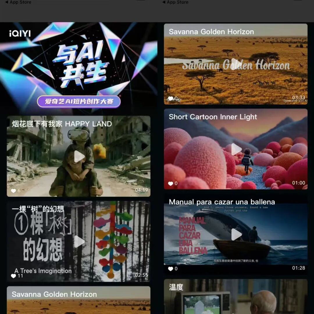 目前大赛已进入最终评委评审阶段,在爱奇艺APP内搜索"AI短片"或"AI大赛"即可看到通过初筛的142份作品。