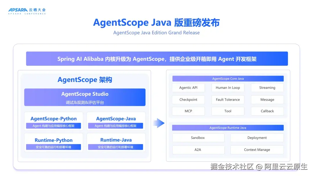 从开发框架的演进,到 Python、Java、Golang 全生态的支持;从分布式系统的落地实践,到全链路安全与智能评估机制------每一步都在推动 AI 原生应用走向成熟。