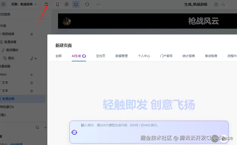 在上一章节中,我对云开发的AI能力做了初步了解,其中提到了通过一句话生成网页的功能,虽然当时我只是略过了一笔,但今天我们不妨深入探讨一下,看看它的可视化开发AI能力到底有多强大!