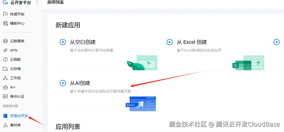 进入环境后,我们直接选择"可视化开发"选项,开始进行AI驱动的网站搭建。