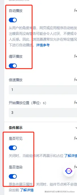 这里还有一个需要特别注意的事项:如果你希望你的音乐能够自动播放(例如我设置的背景音乐),你必须确保音乐播放器的组件是可见的。如果播放器组件被隐藏或未显示,音乐将无法自动播放,如图所示: