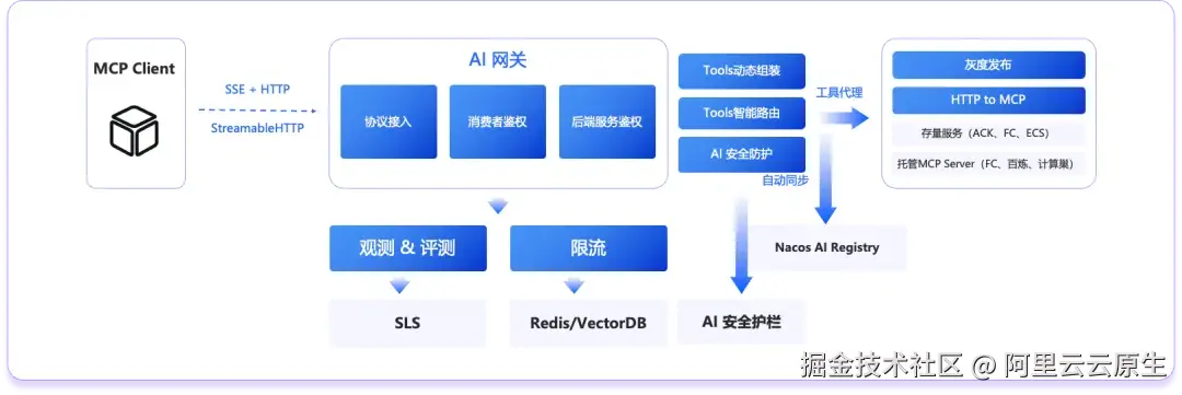 过去半年,AI 网关完成了从"单一模型代理"到"AI 应用统一入口"的跨越------内核上,以模型、MCP、Agent 三大 API 形态覆盖 AI 原生架构的主要流量;治理上,围绕多模型、多模态、多场景等痛点,在路由、协议转换、限流、缓存、观测、安全护栏等方面形成了一站式闭环;生态上,开源 HiMarket 让任何企业都能快速搭建自己的 AI 开发者门户,实现开发者与管理者的协同;成本上,Serverless 版把开通门槛降到"零实例费 + 按调用付费",让中小团队也能零运维享受企业级 AI 流量治理。至此,AI 网关已不只是"流量网关",而是 AI 时代的新型基础设施:向下屏蔽异构算力与协议差异,向上支撑模型、工具、Agent 的统一编排、治理与安全,为正在落地的各类 AI 应用提供了可插拔、可扩展、可持续演进的坚实底座。