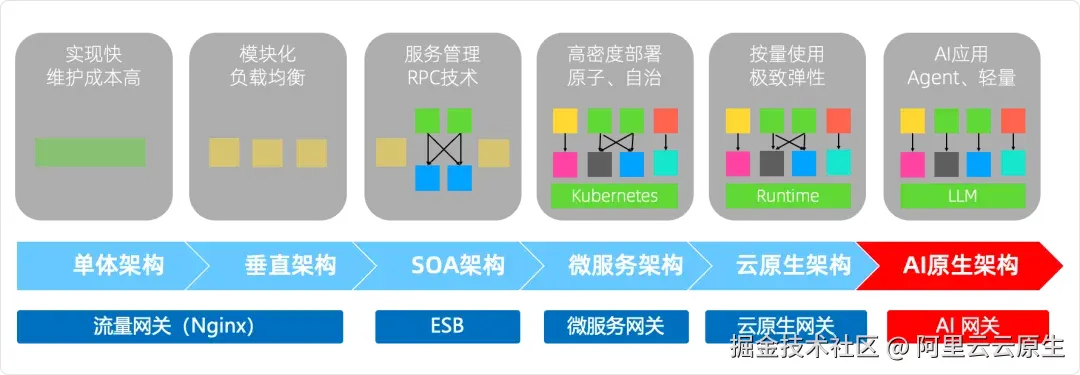 当 AI 应用出现后,伴随着 AI 原生架构的发展,AI 网关也顺势而生了。