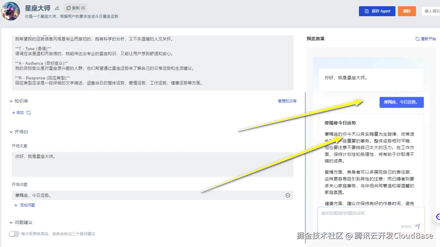 一切准备就绪以后,在右上角,点击 保存Agent;